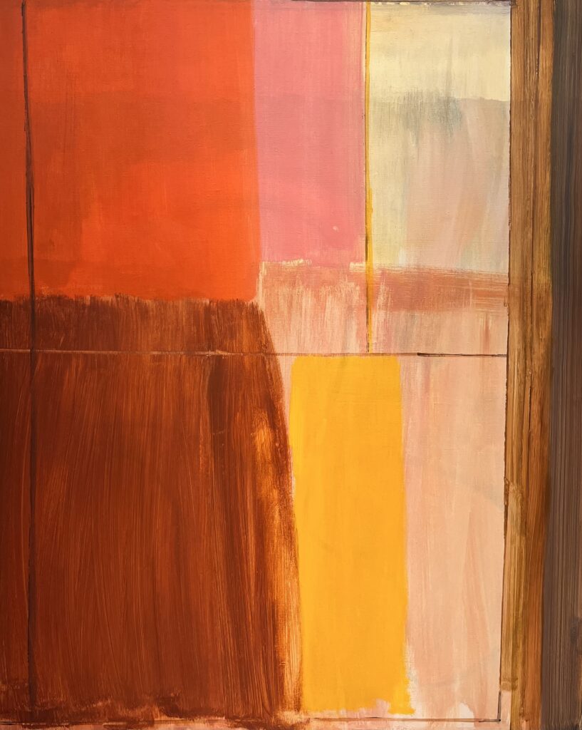 Vanaf november is de KAnVAs expositie Aan de Rand van Monica Carro Muiño te bewonderen in onze Lobby. De schilderijen van Monica vinden hun oorsprong in stille scènes. Een leeg zwembad, een staketsel, een strak opgemaakt bed, een trap. De kunstenares omarmt de leegte, waar vlakken en lijnen elkaar ontmoeten en perspectief zich buigt naar het onverwachte. Ruimtes kantelen en worden nieuwe vormen, en kleuren vloeien over strakke structuren en randen heen. In elk vlak en elke kleurkeuze ligt haar zoektocht naar de spanning binnen de grens van het schilderij.